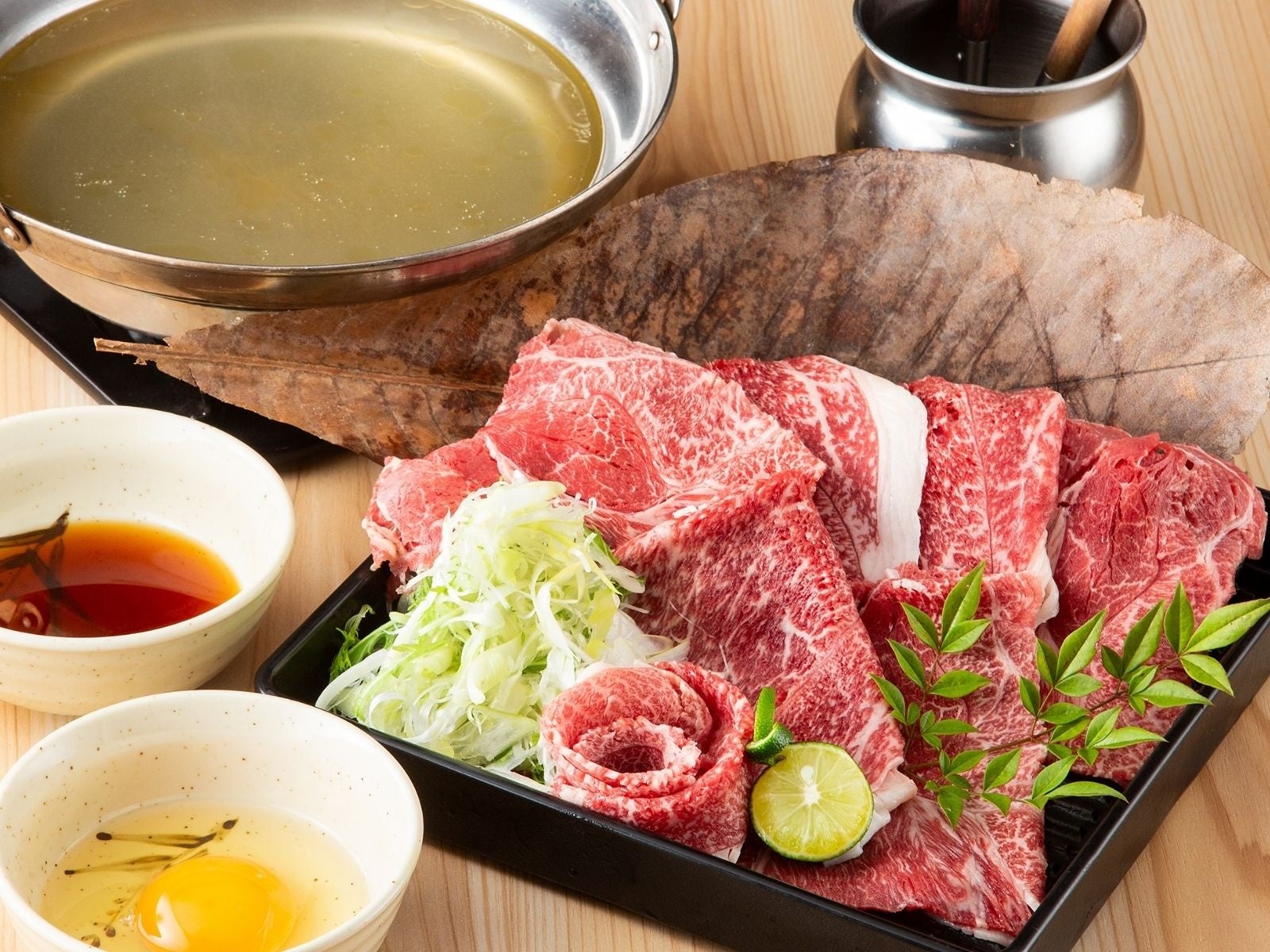 程よいサシの入った厳選和牛です。鶏ガラの出汁で飽きることのない自慢のお鍋です。そのまま食べるも良し。卵と絡めて味変もおすすめです。
