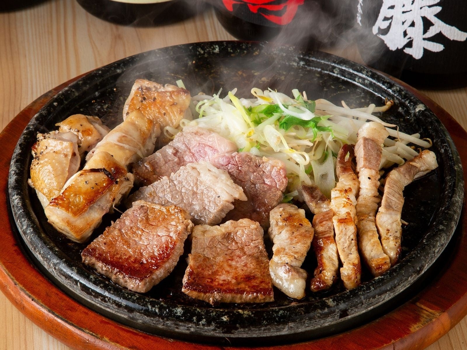 熱した溶岩石でお肉を焼くと、遠赤外線を放出し内部から加熱されるため柔らかく仕上がります!鹿児島が日本に誇る黒牛、黒豚、薩摩鶏を是非溶岩焼きにてご堪能ください!