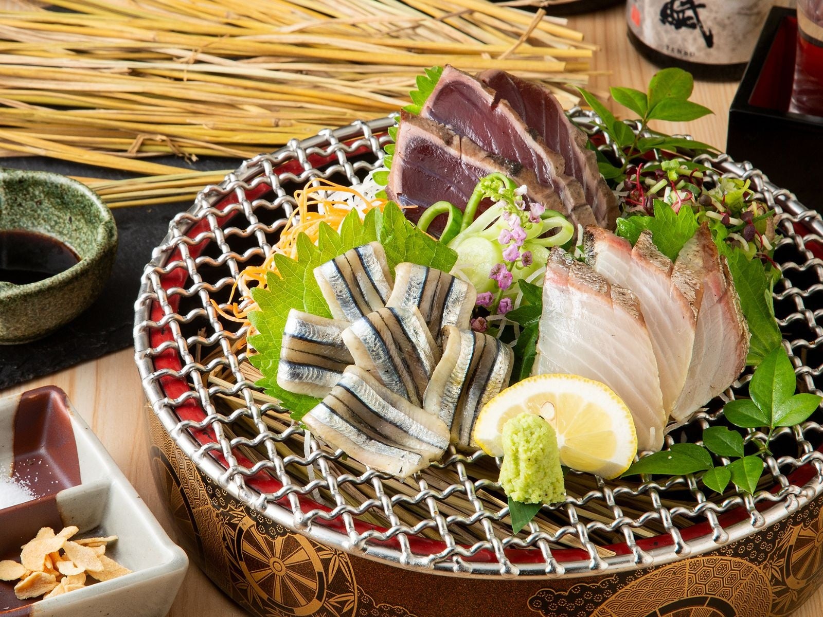 三種を一度に堪能できる欲張りメニュー。藁で燻すことで素材の旨味と香りがハーモニーを奏でる♪