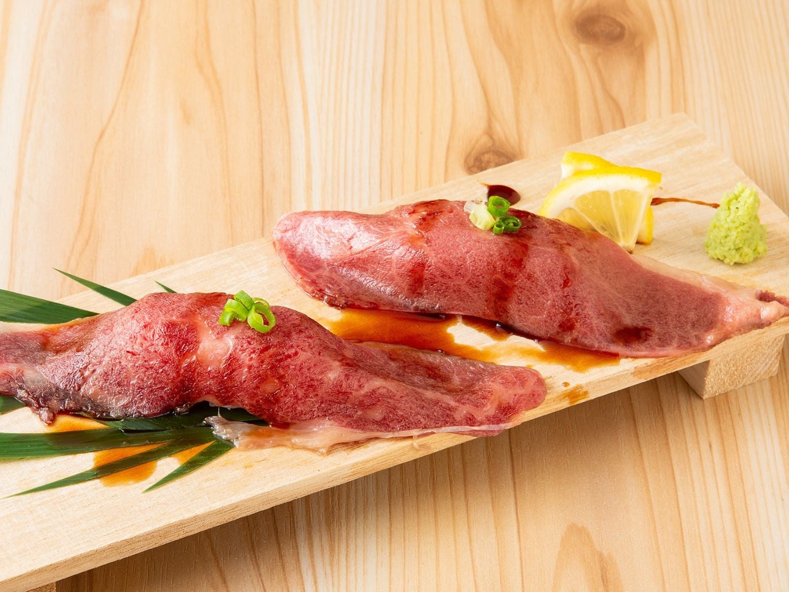 黒毛和牛を贅沢に炙り寿司にしました。口の中に旨味が全面に広がる至極の逸品。