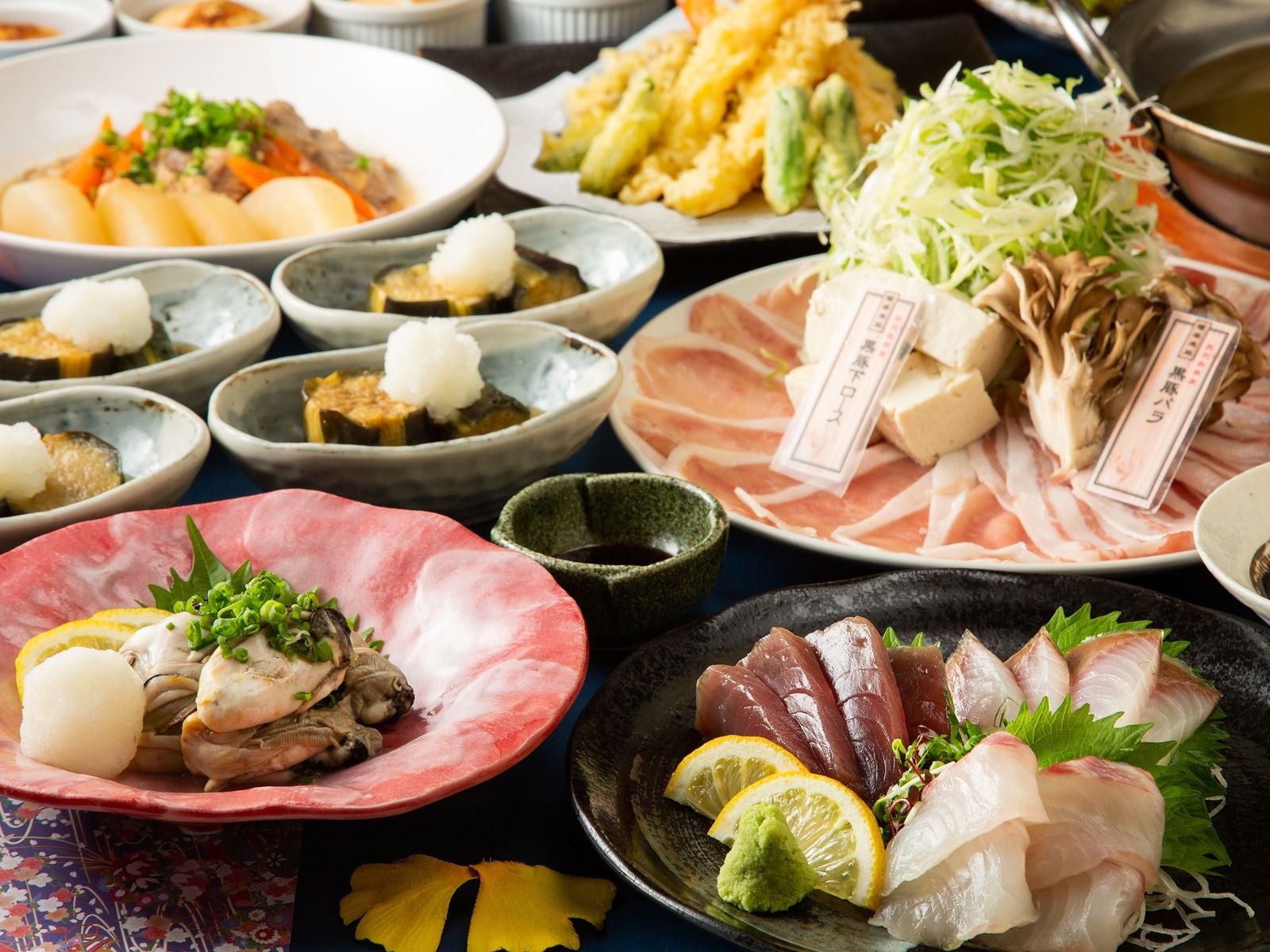 くろ屋の定番宴会コース。黒豚しゃぶしゃぶと薩摩鶏の溶岩焼きの3大名物の2つを楽しむことができます。宴会におすすめ全9品・2時間飲み放題付コースです。