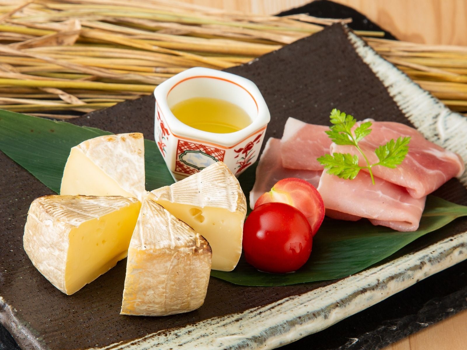 濃厚なカマンベールチーズを贅沢に藁で燻しました。生ハムの塩分と濃厚カマンベールチーズのコラボレーション。