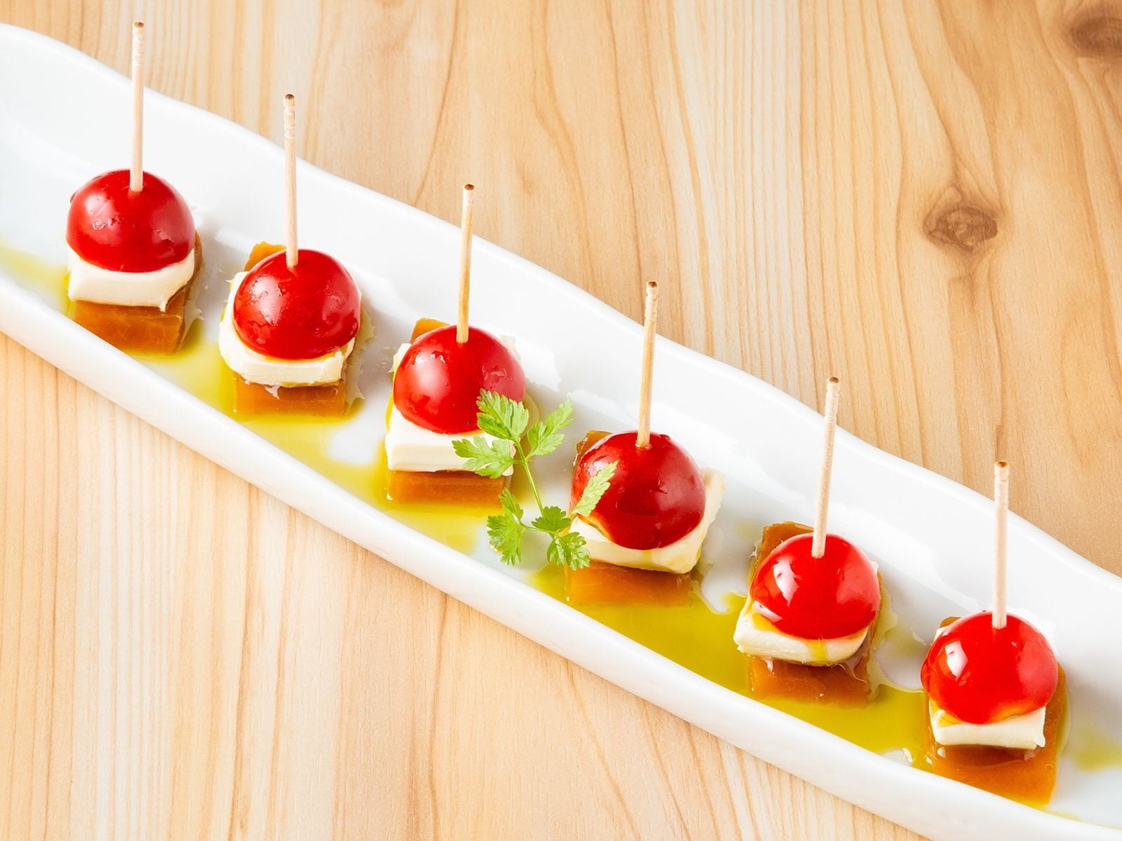女性人気No.1!!くろ屋特製一口カプレーゼ。お茶オイルほのかに香るヘルシーな逸品。