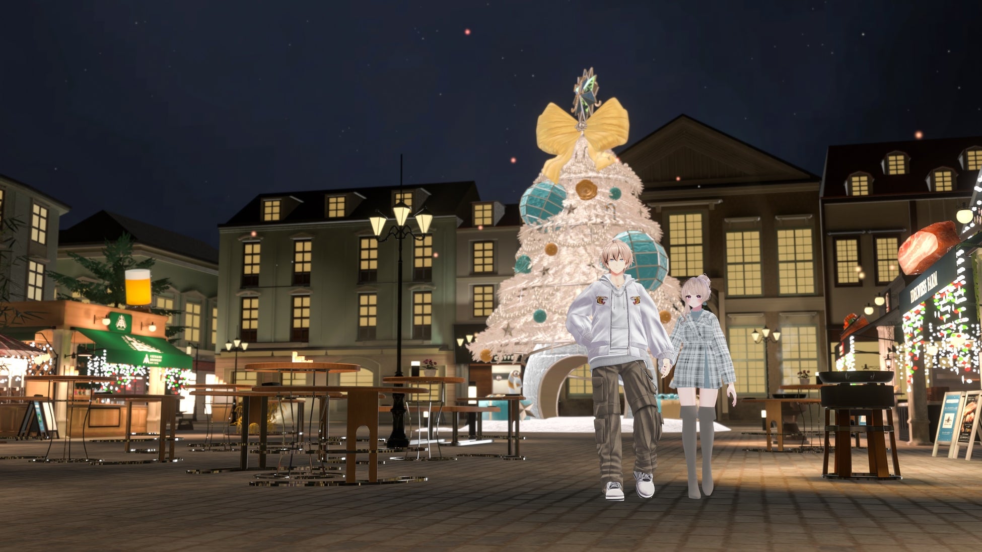 「FUTURE 20th SQUARE」は、株式会社フューチャーショップが運営するVRChat上のバーチャルワールドです。昨年から30,000人超の来場者を集め、ヨーロッパのクリスマスマーケットを彷彿とさせる幻想的な空間でユーザーにリテール体験を提供しています。リニューアルでは、ユーザーがバーチャルポップアップでの体験を通じて直接ECサイトへとアクセスし、オンラインショッピングも可能な新たな消費行動が提案されています。