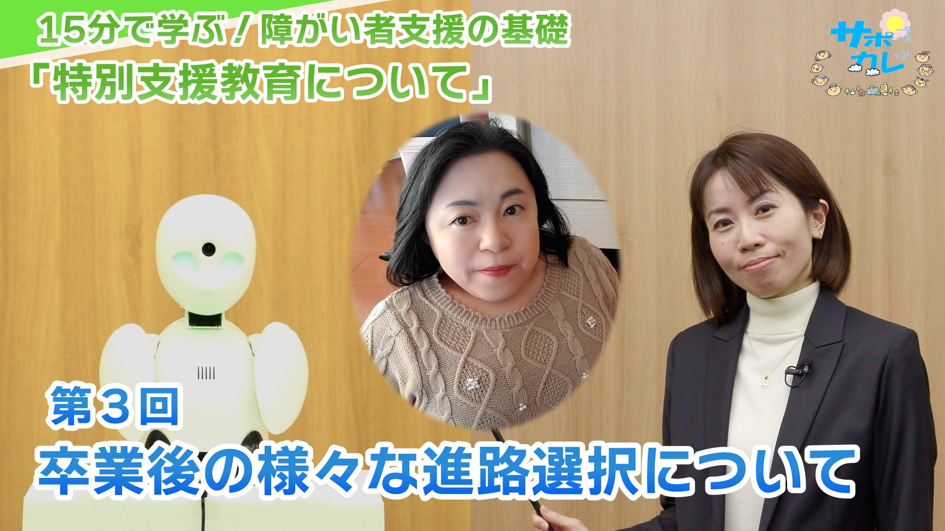 今回、「特別支援教育について」として、特別支援教育とは何か、を講義し、特別支援学校高等部での取り組み内容を紹介しています。在学中の取り組みを把握することによって、環境変化に伴う利用者のストレスや不安を軽減ができるのではないかと思います。ぜひ、ご視聴ください。