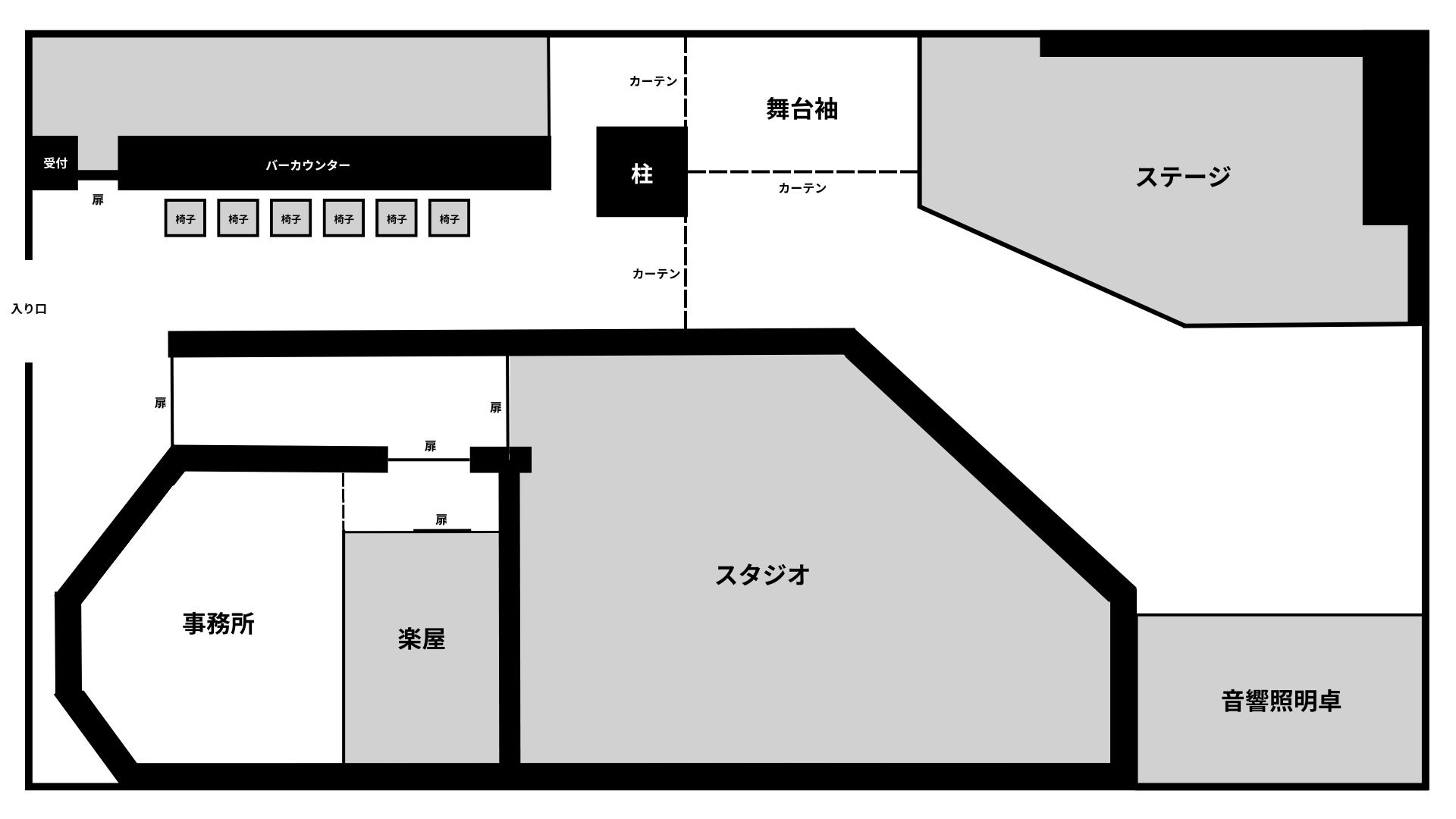 巣鴨駅から徒歩3分の場所に位置し、施設には充実した演出設備が備わり、ライブハウス、スタ ジオ、バーカウンターで最大150人収容できる小規模施設となっています。リハーサルスタジオ は、約12畳の広さがあり、横幅3mの大型鏡も設置しています。