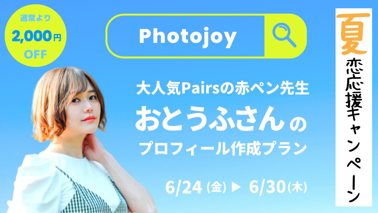 株式会社アルファブル(本社:東京都新宿区、代表取締役:香美惇)が運営する恋活・婚活のプロフィール写真に特化した出張撮影サービス「Photojoy」では、夏までに恋人を作りたい方を応援する「夏恋応援キャンペーン」として、6月24日(金)より「おとうふプロフィール作成プラン」を通常価格の2,000円OFFで提供いたします。