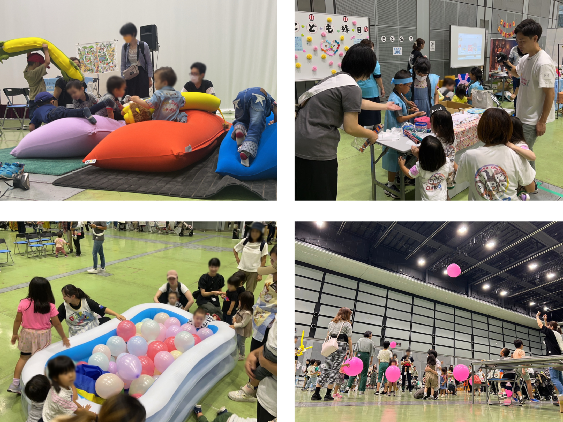 今回の開催は、過去2回の開催よりも広いスペースをお借りし、来場したお子さんたちがたくさん遊べる空間を用意しました。風船バレーボールをしたり、Yogiboビーズソファでゴロゴロしたり、子ども縁日でお菓子釣り・ボール投げで遊んだり、風船プールではしゃいだり、子どもたちの笑顔も印象的でした。そういった子どもたちが楽しめる空間があることも、多胎家庭同士の会話が生むために必要なことであることを再確認したイベントでもありました。