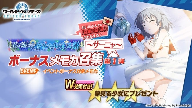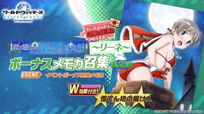 株式会社フレンズライトは、運営開発を行っているスマートフォン向けゲームアプリ『ワールドウィッチーズ UNITED FRONT』(以下、『ユナフロ』)にて、2022年12月16日(金)メンテナンス後より様々なイベントを開催いたします。
