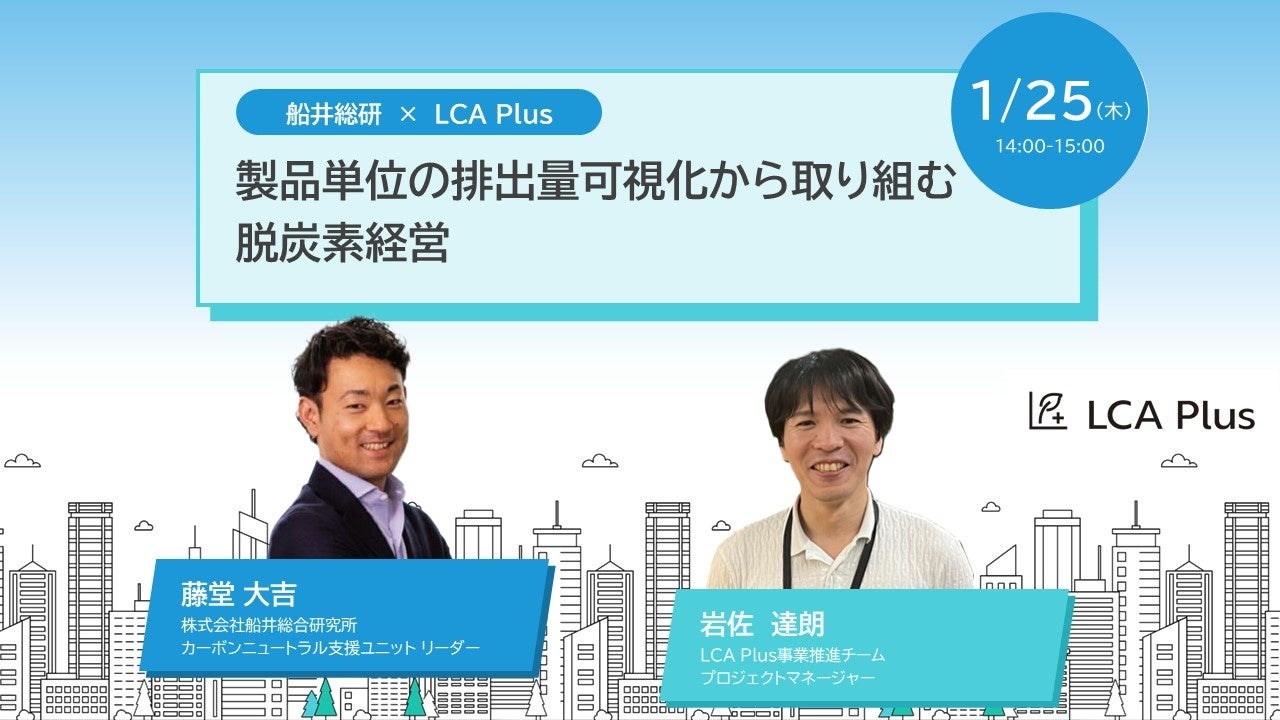 2024年1月25日(木) ウェビナー開催のお知らせ 船井総研 × LCA Plus 製品単位の排出量可視化から取り組む脱炭素経営