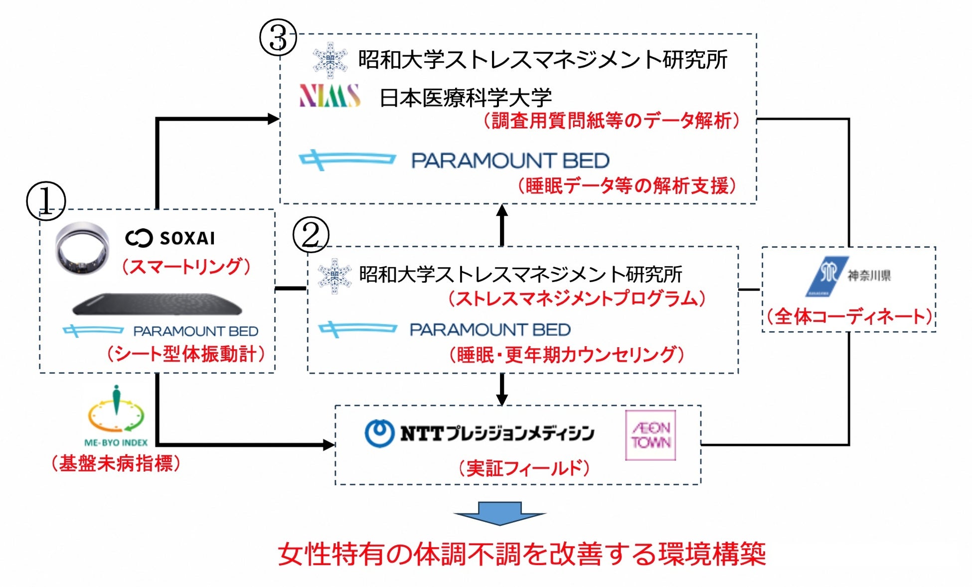 神奈川県のコーディネートのもと、産業界や学術機関が連携し、女性の社会的活躍をサポートするための環境づくりに貢献する実証事業が開始されました。本事業では、株式会社SOXAI(本社:横浜市中区、代表取締役:渡邉 達彦)が提供するスマートリング「SOXAI RING 1」を活用し、睡眠やストレスの状態を可視化することで、未病改善の新たなスキームを構築します。