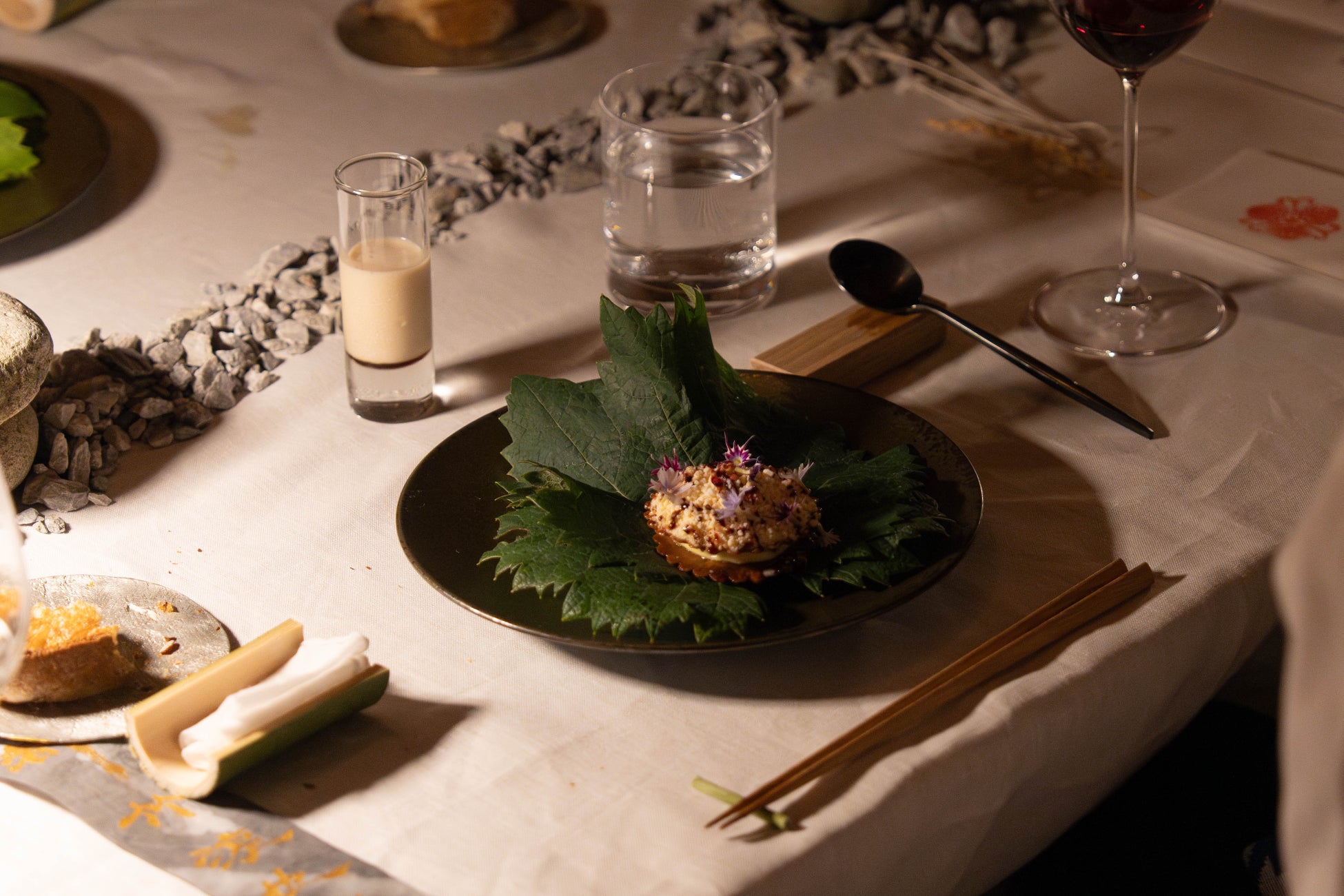 共創企業の皆様などをお招きする特別なディナー「Co-Innovation Dining」を気多若宮神社にて開催。富山県南砺市利賀村にて美食を追求し、ナンバーワン デスティネーション レストランとも評される「L’évo(レヴォ)」のシェフ・谷口英司氏を飛騨古川の地に招きました。飛騨牛のような既に名物として名のある食材だけではなく、普段あまり目立たない飛騨の食材を使用した、飛騨古川の地でしか味わうことのできない特別なコースを振る舞っていただきました。「食」の領域における、新たな価値の発掘と創造を体現していただきました。