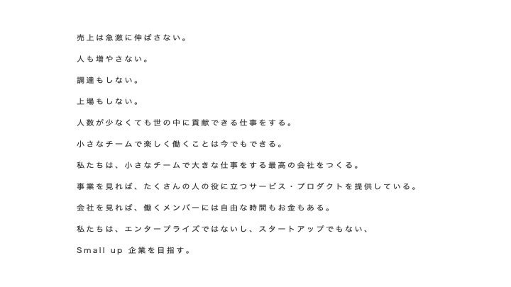 このSmall upという価値観をもとに、コーポレートブランドをリニューアルし、Small up企業の宣誓文も作成しました。