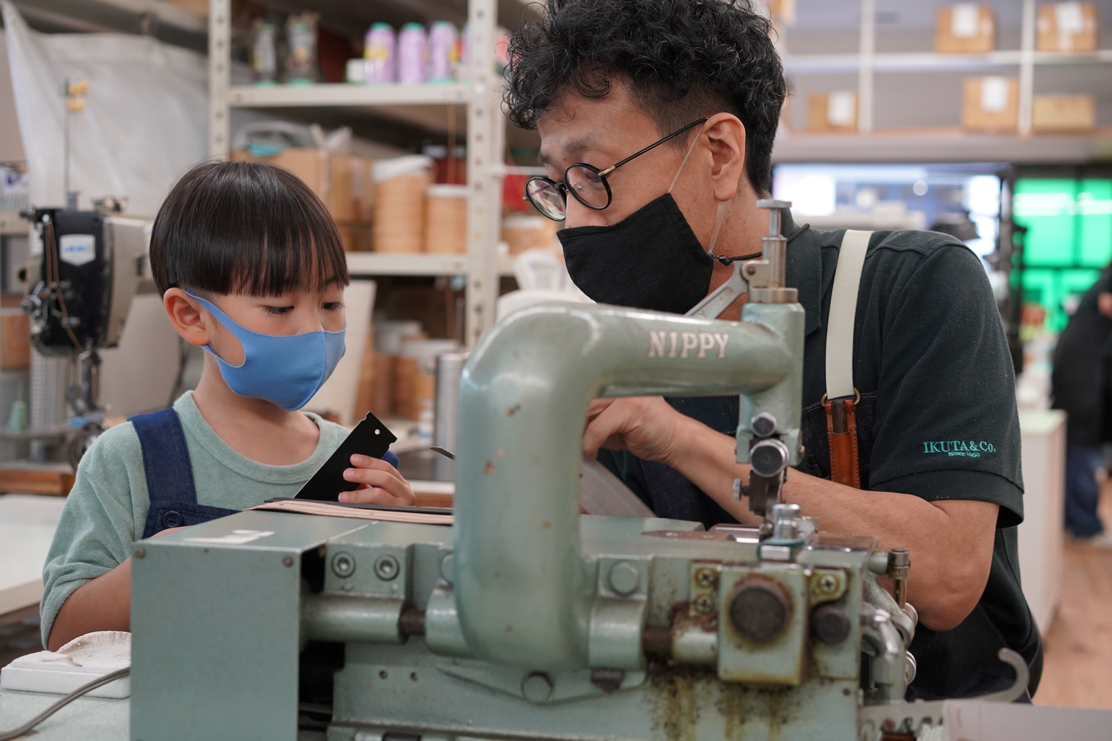 2024年度入学向けに、「ランドセル工房生田」のランドセルをご購入いただいたお客さまで、イベントへ応募された方の中から、抽選で選ばれたご家族が参加。当日は、実際にランドセルを製作している大阪市生野区の工房で、革の裁断から組立て、ミシンでの縫製まで、職人と一緒にランドセルの一部を製作し、後日そのパーツを組み込んだランドセルを職人が仕上げます。ランドセル職人と一緒に、普段職人が愛用している道具を使って、親子で世界にひとつだけの本革ランドセルを作ることが出来る体験イベントです。