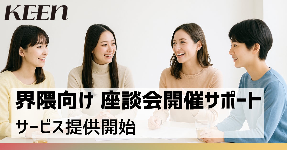 KEEN株式会社(所在地:東京都渋谷区、代表取締役:小倉一葉、以下「KEEN」)は、ブランドのコアユーザーや界隈のキーパーソン(KOL)との関係性を深め、効果的なインサイトを引き出すことを目的とした座談会開催サポートサービスの提供を開始しました。本プランでは、KEEN界隈DBを活用した精度の高い招待者の選定から企画・運営、開催後のレポートまでワンストップでご支援します。