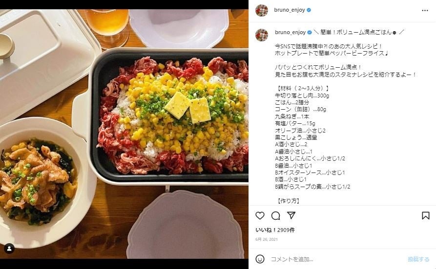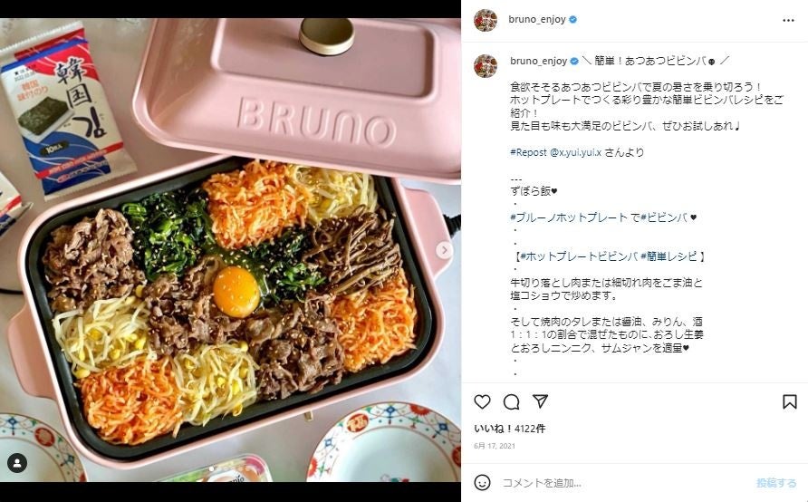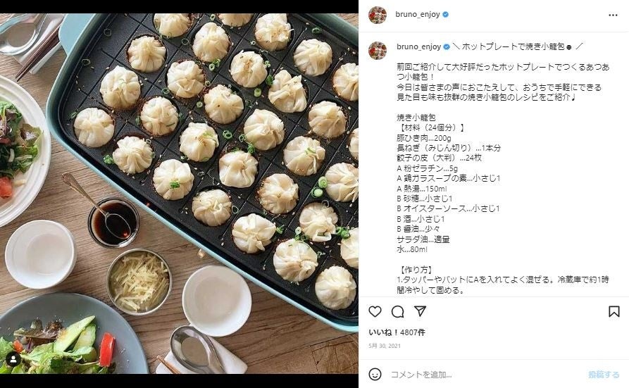 BRUNOホットプレートでつくったご当地レシピの写真をInstagramに投稿。