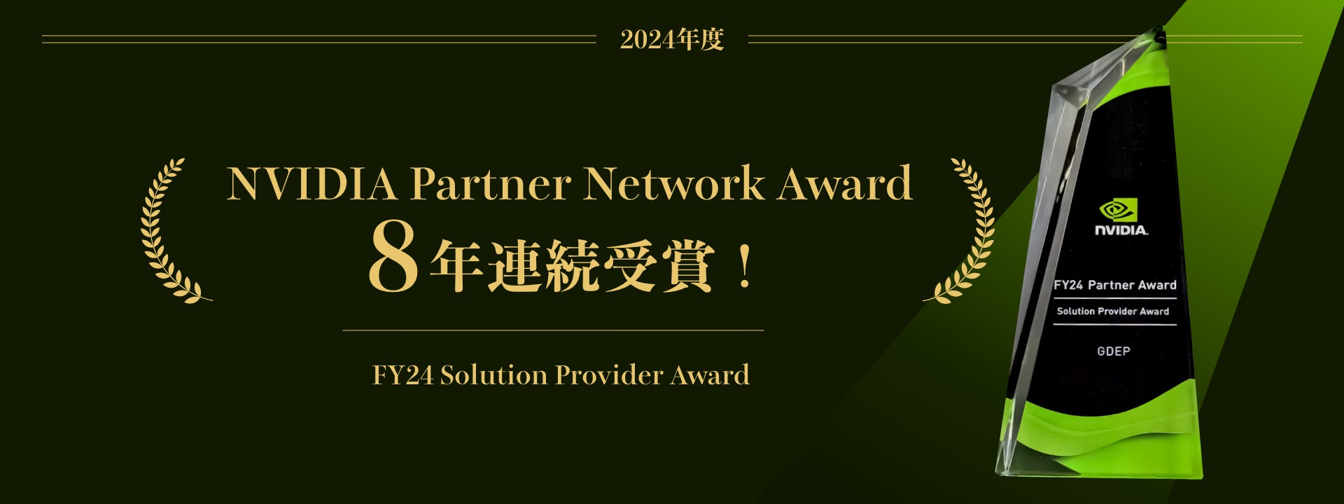 AIとビジュアライゼーションのソリューションカンパニーである株式会社ジーデップ・アドバンス(GDEP Advance,Inc. 本社:東京都中央区、代表取締役CEO 飯野匡道、東証スタンダード 証券コード:5885)は、運営参画する「G-DEP 日本GPUコンピューティング有限責任事業組合」が、3月にサンフランシスコ州San Joseで開催された世界的なAI カンファレンスである「NVIDIA GTC」においてNVIDIA Partner Network Award「FY24 Solution Provider Award」を受賞したことを発表いたします。