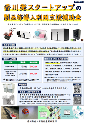 「香川発スタートアップの製品等導入利用支援補助金」募集開始!
