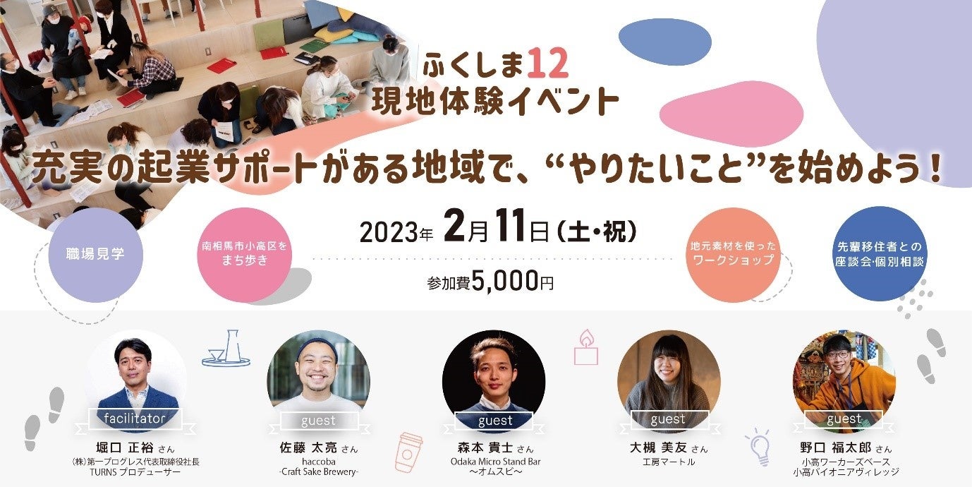 ふくしま12現地体験イベント 第2回『充実の起業サポートがある地域で、“やりたいこと”を始めよう!』を開催します
