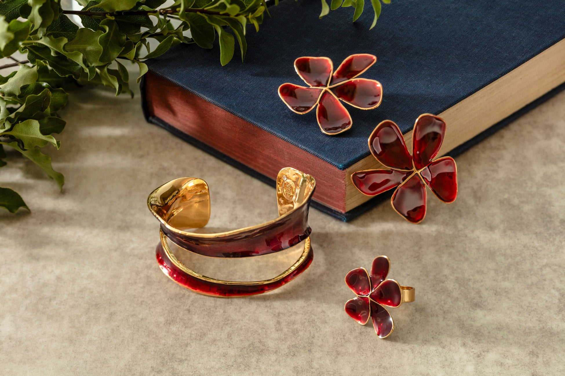 今季初登場のシックで深みのあるレッド「ルージュレッド」は、ホリデーシーズンやクリスマスの装いを華やかに彩るカラーとして、気分を高めます。ネックレスからリング、耳周りアイテムまで、温かみと存在感を兼ね備え、特別なシーンだけではなく、日常まで幅広く活躍します。