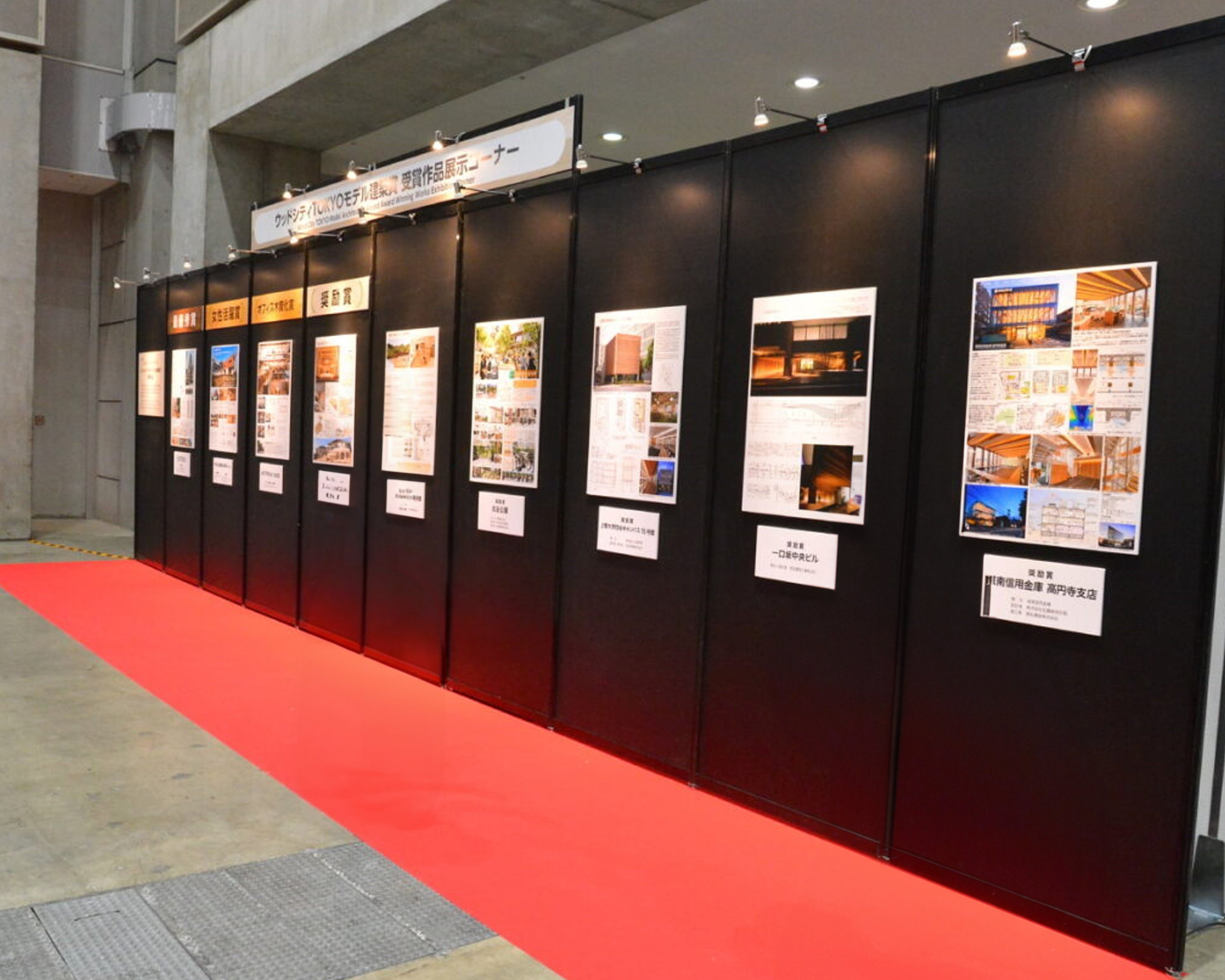 国産木材を活用した優れた建築物を表彰する建築コンクールの受賞作品や、設計やデザインを学ぶ学生による木材製品のコンテスト入賞作品、日本各地の「木壁」等を展示いたします。