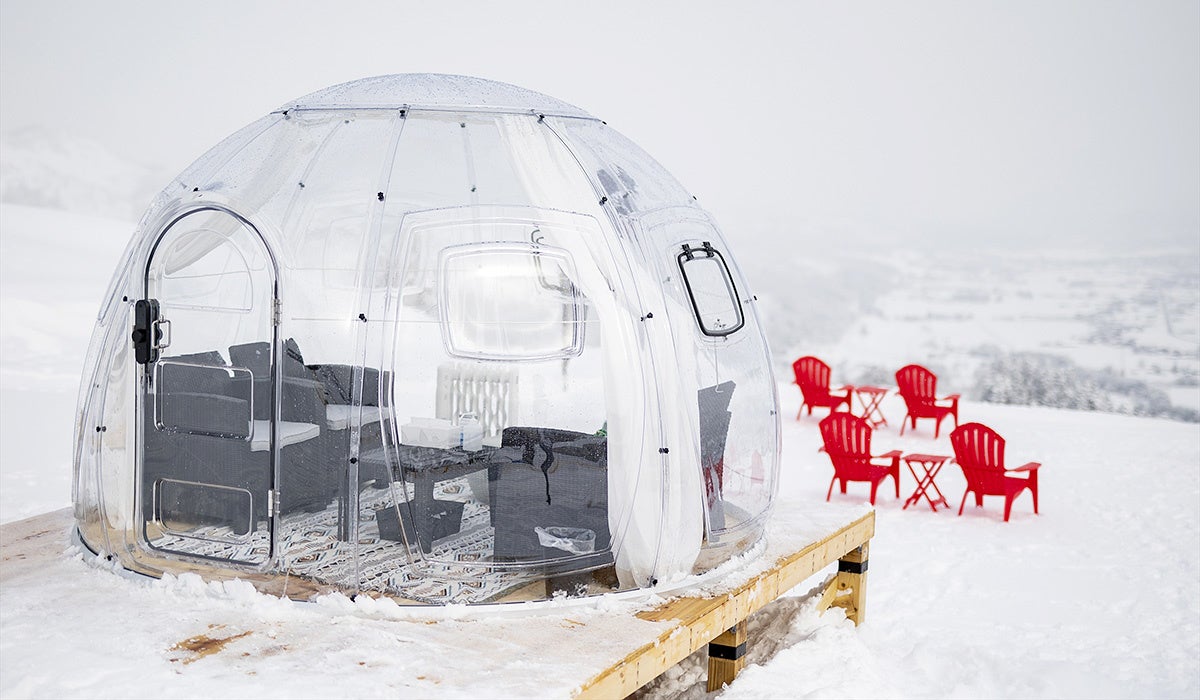 魚沼平野と越後三山の雪景色を一望する開放的な空間をゆったりとお過ごしいただくドームテント&スノーテラスを中心に、