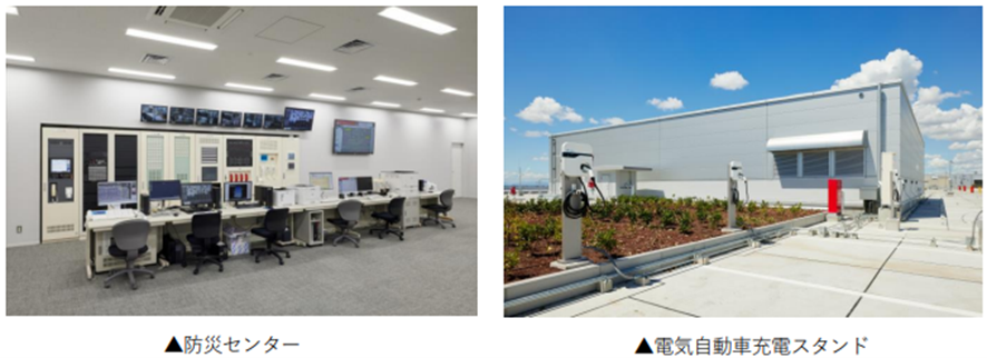 免震構造による地震対策、非常用発電機による停電対策や津波・大雨・台風対策、24 時間 365 日の警備員・ 設備管理員常駐に加え、環境への配慮として壁面緑化や電気自動車充電スタンドを備えており、万一の際の事業継続性や将来の環境面に配慮した持続可能な物流拠点を構築できます。併せて、本物件は国土交通省が定めた「建築物の省エネ性能表示のガイドライン」に基づく第三者認証制度「BELS」にて★5を取得しており、環境への配慮を推進しています。