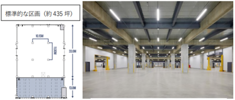 本物件(地上 7 階建/1~6階:倉庫+屋上駐車場)は 1~3 階が小区画になっており、標準区画約 435 坪・ 最小区画約144坪と都心エリアの物流施設において最小クラスからの面積帯でご利用が可能です。そのため、 大型物流施設のメリット(免震構造・充実した共用部・管理体制・BCP 対応ほか)を享受しながらも、事業ステージに応じた無駄の無い規模の拠点構築が可能です。