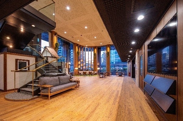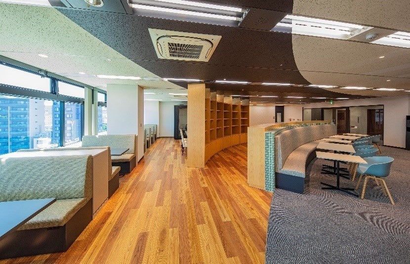 設計及び工事については、建築や内装への木材利用を推奨する株式会社乃村工藝社(本社:東京都港区、代表取締役社長執行役員:榎本 修次)にご担当いただき、エントランスホール及び2層吹き抜けロビー等の「木質化」を図るとともに、テレワークとリアルワークの融合、社員間コミュニケーションの充実を目的とするコワーキングスペースを導入いたしました。