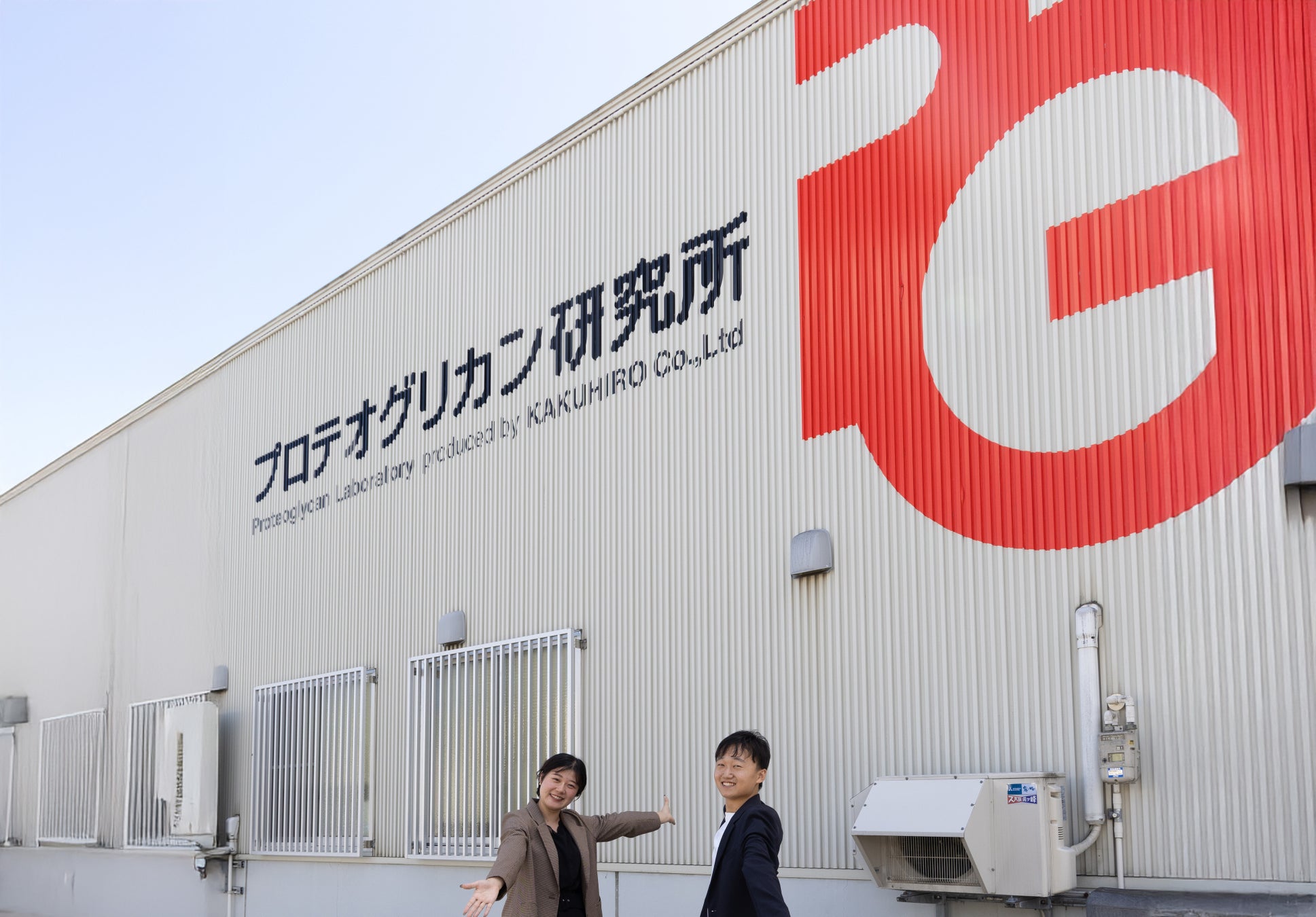 『あゆみ』の開発では、配合する成分の機能性だけでなく、「どんな環境で、どのように作られているか」にもこだわりました。その一環として、主要成分のひとつであるプロテオグリカンの抽出現場、青森県にある製造工場を、私たち開発チームが実際に訪問しました。