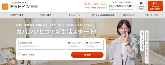 マンスリーマンション運営のアットイン、web上でホテル予約のように検索可能な「空室検索機能」と、住み替えの自由度が高まる「住み替えパスポート」をローンチ