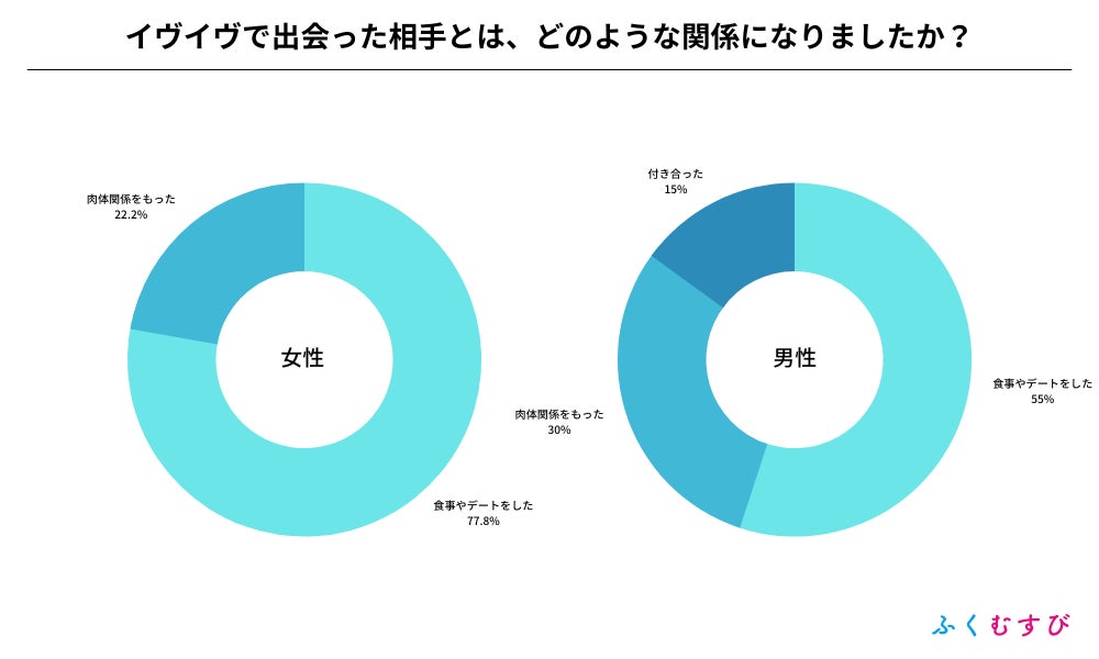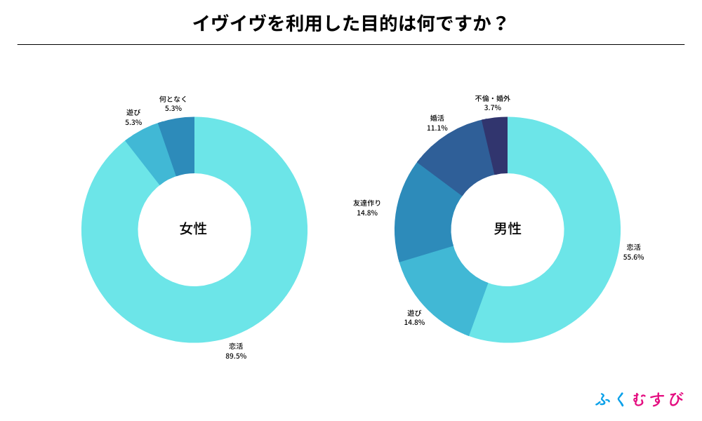 ・女性がイヴイヴを利用した目的は、恋活が1位、遊びが2位となりました。