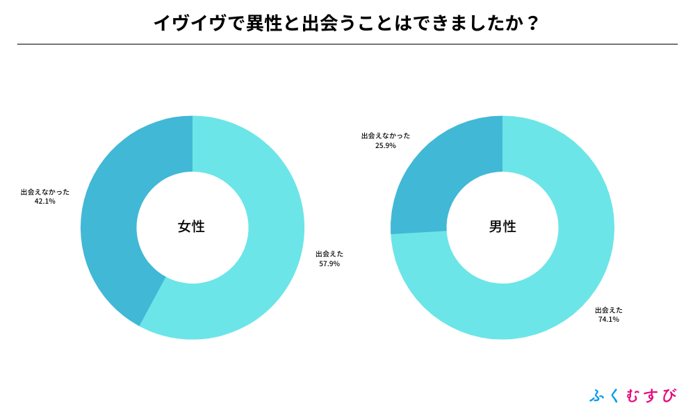 ・イヴイヴで異性と出会えた割合は、男性が74.1%、女性が57.9%となりました。
