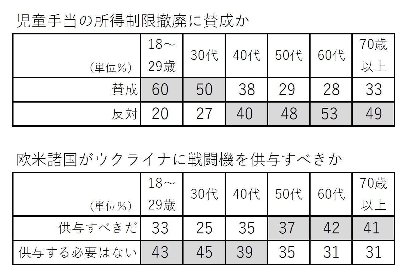 ■児童手当の所得制限撤廃に賛否拮抗、30代以下は賛成多数