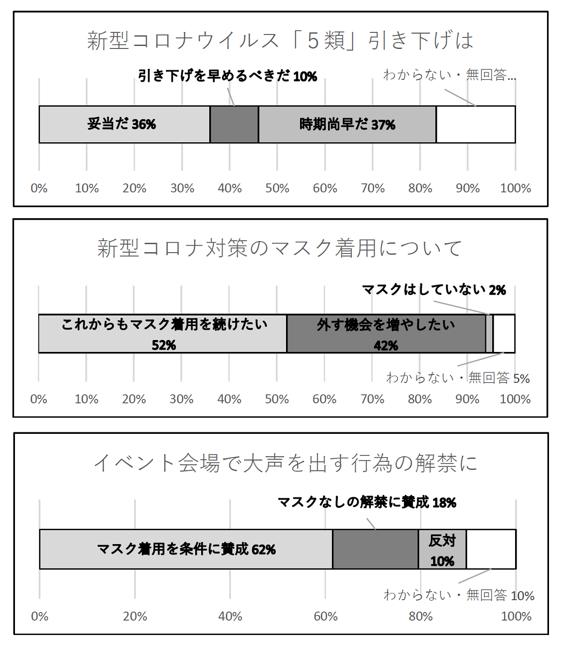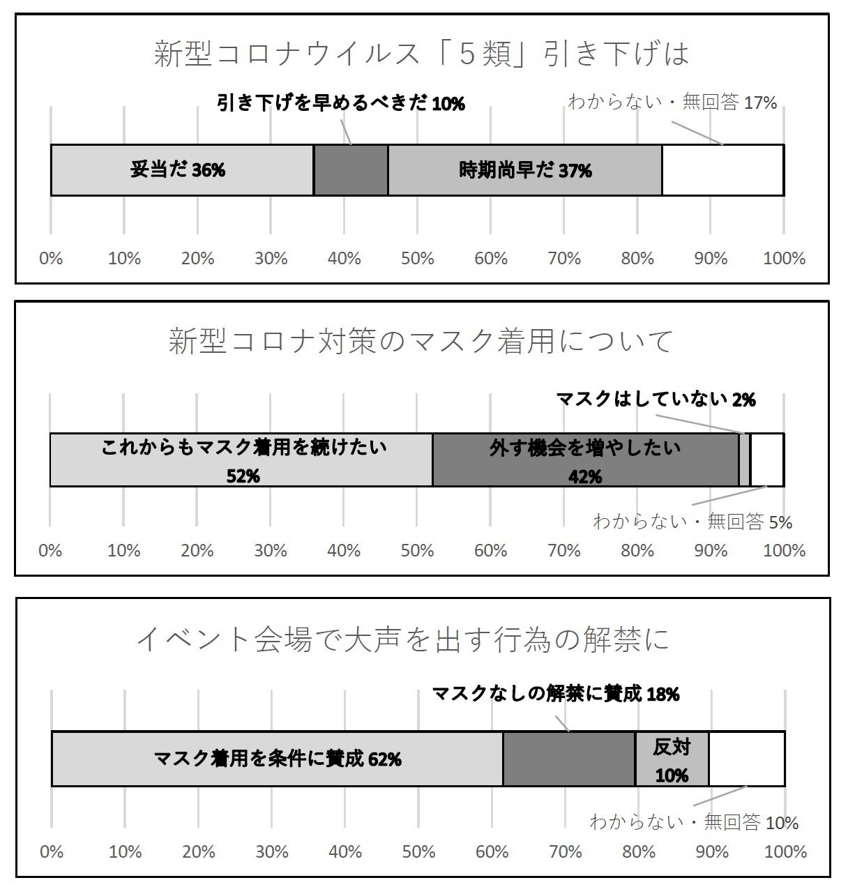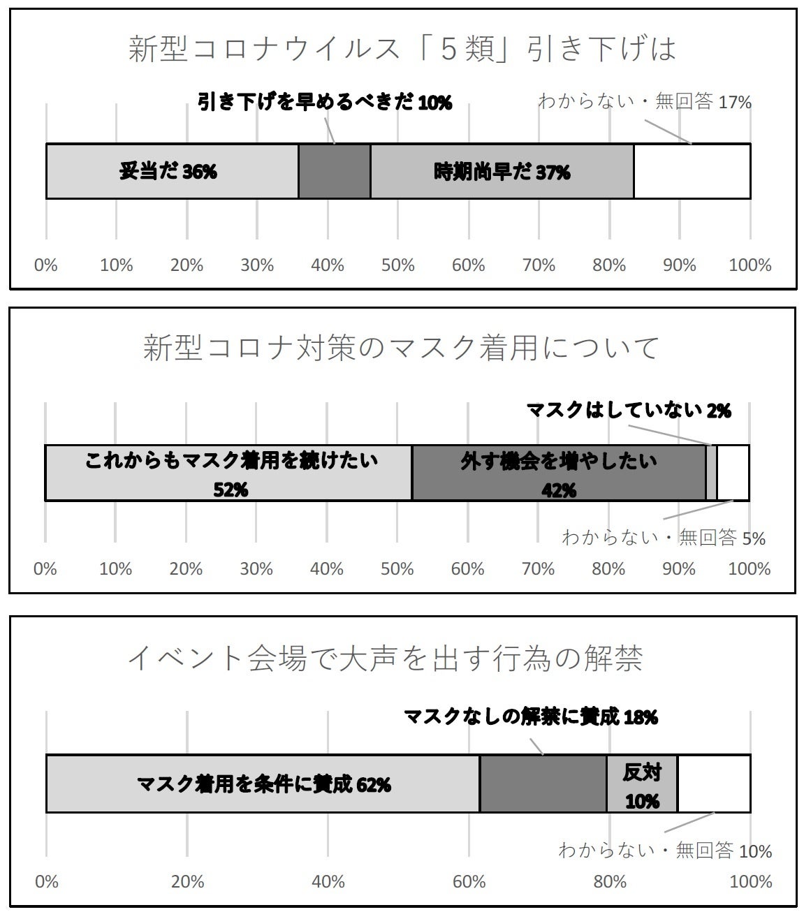 ■マスク着用「続けたい」52%、イベントで大声「マスク条件に賛成」62%