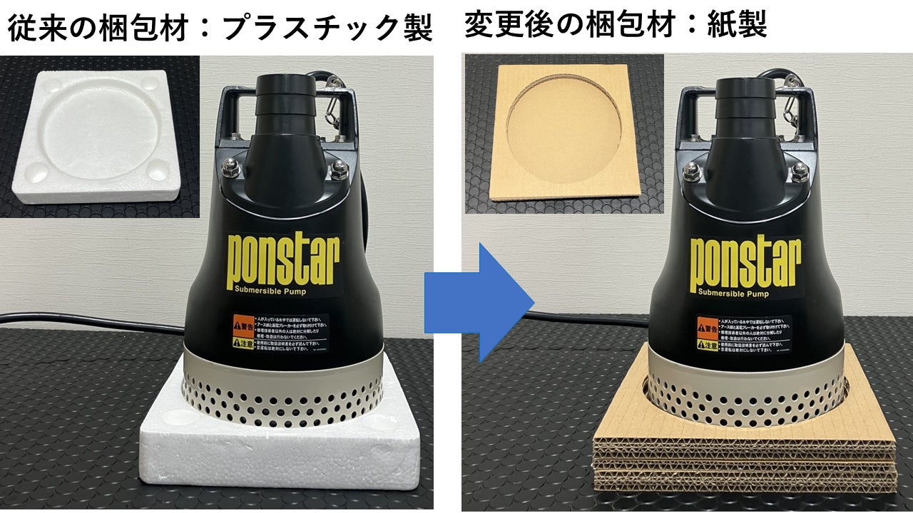 製品梱包時にプラスチック製緩衝材を使用していましたが、リサイクル可能な段ボールへ順次切り替えを実施しています。