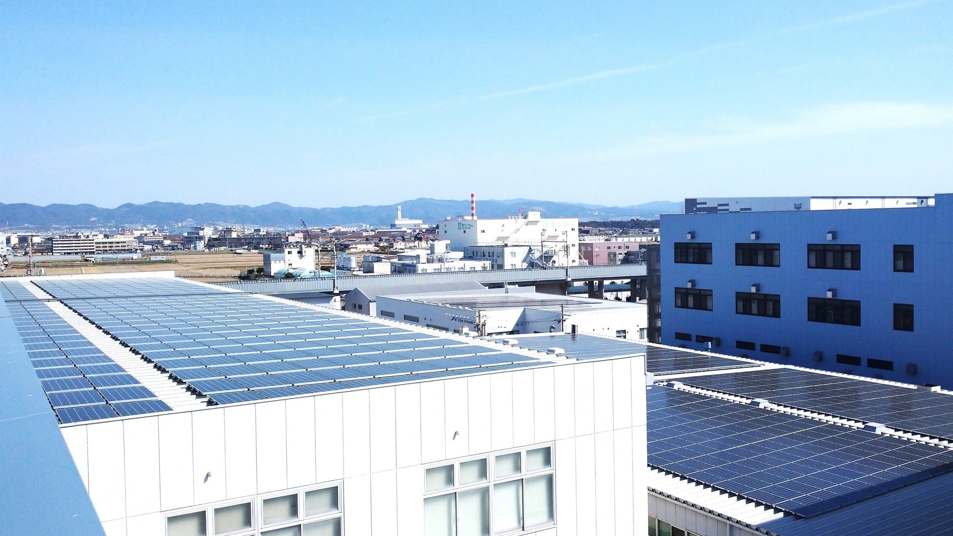 工進では気候変動問題に対応すべく、本社製造施設及び倉庫の屋根の85%以上に太陽光パネルを設置し、1カ月で約30,000kWhの発電をしています。(2025年3月現在)