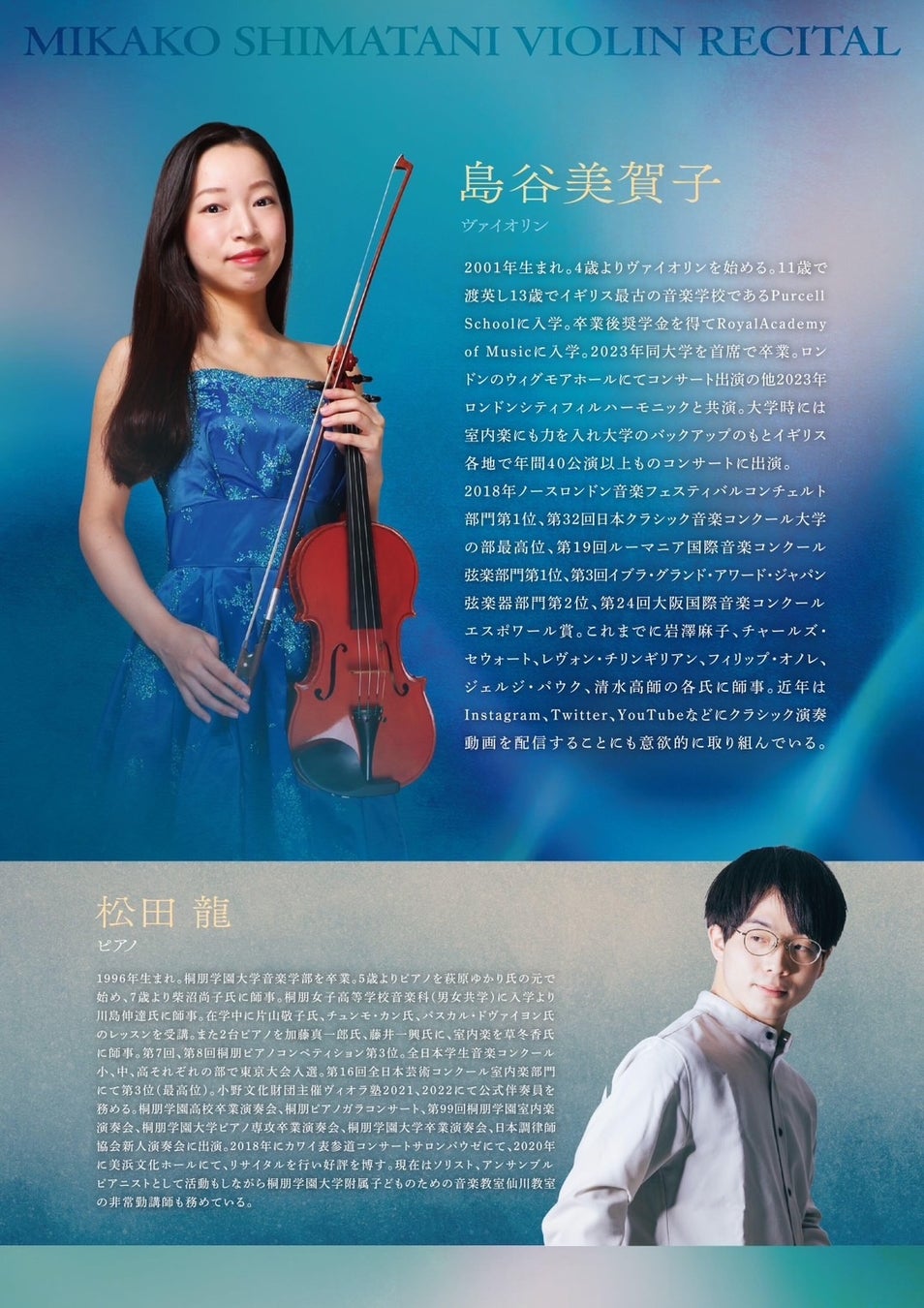 島谷美賀子 ヴァイオリンリサイタル開催のお知らせ