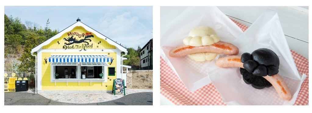 黄色の外観にネオンが光り、ネコがドタバタと飛び跳ねる看板のテイクアウト専門店です。ネコの手の形をしたパンでアツアツの大きなソーセージを挟んだオリジナルのホットドッグ「ネコの手ドッグ」は白と黒の2種を提供します(各種990円)。ソーセージは愛知の三河豚を使用しています。この他、フライドポテト、魔女の谷のビールやソフトドリンクを販売します。商品をお受け取りになった後はエリア内のベンチでお召し上がりください。