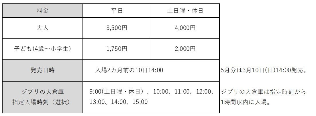 ウェブサイトのチケットページ(https://ghibli-park.jp/ticket )をご確認ください。
