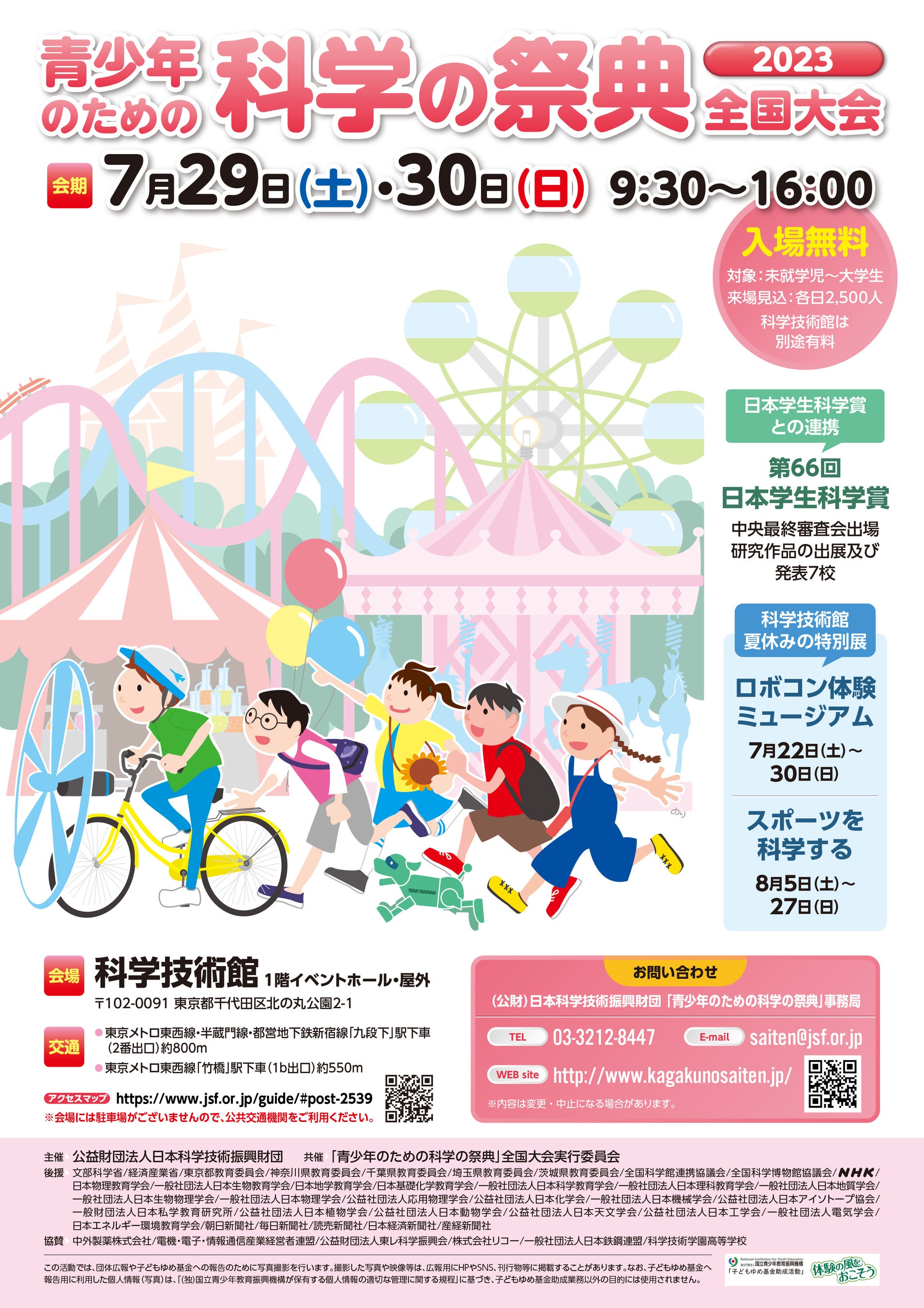 問合せ:「青少年のための科学の祭典」事務局 TEL 03-3212-8447 E-mail saiten@jsf.or.jp