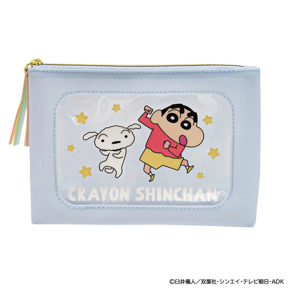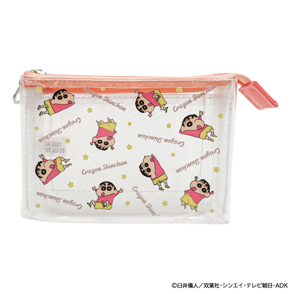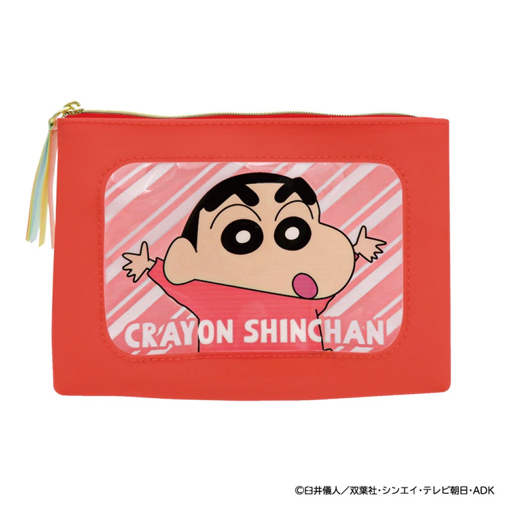 ポーチはどちらもクリア素材が使われています。「しんちゃん」のイラストがクリア窓に大きく描かれているシリコンウィンドウポーチは、マチがあってコスメや小物がたっぷり収納できます。