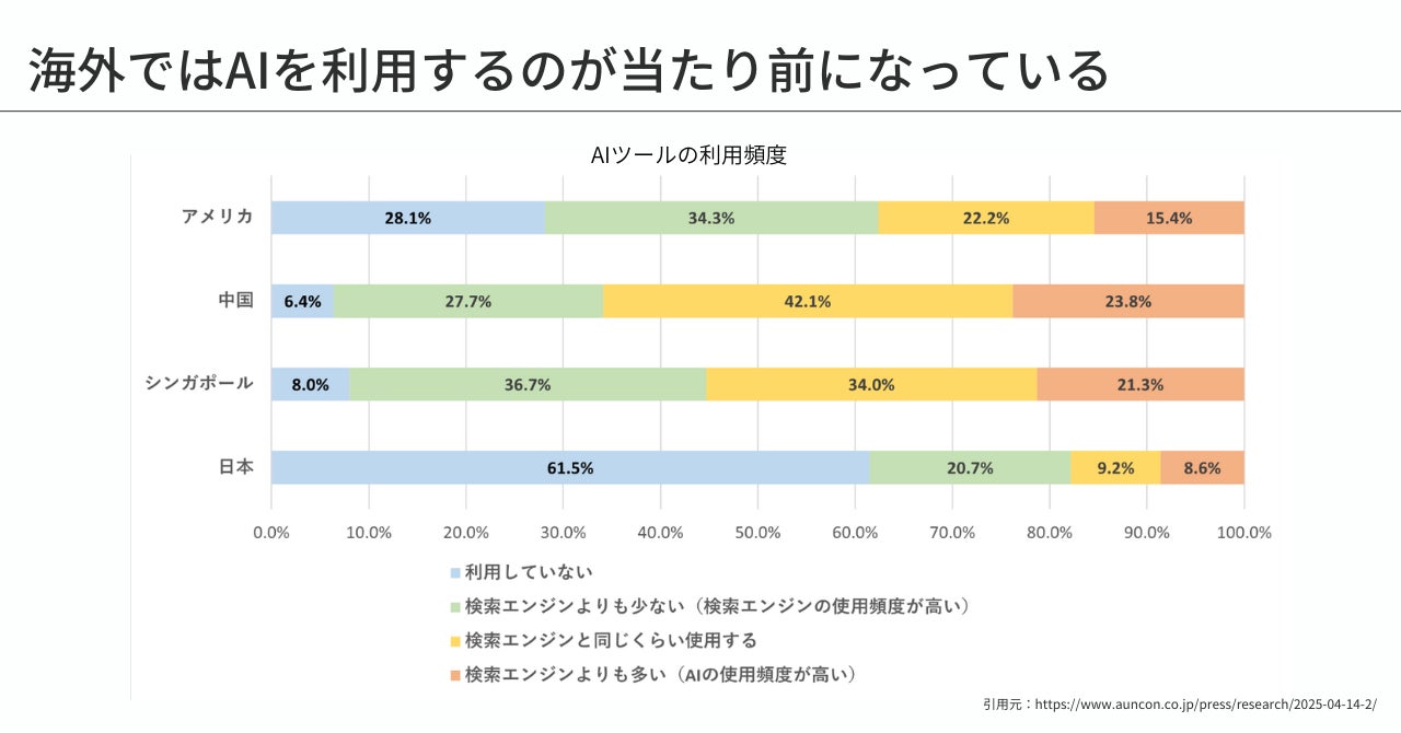海外では、AI活用が日常的になっています。そのため、観光地となる地域では、いち早くAI活用を取り入れることで競合と差をつけることが可能です。