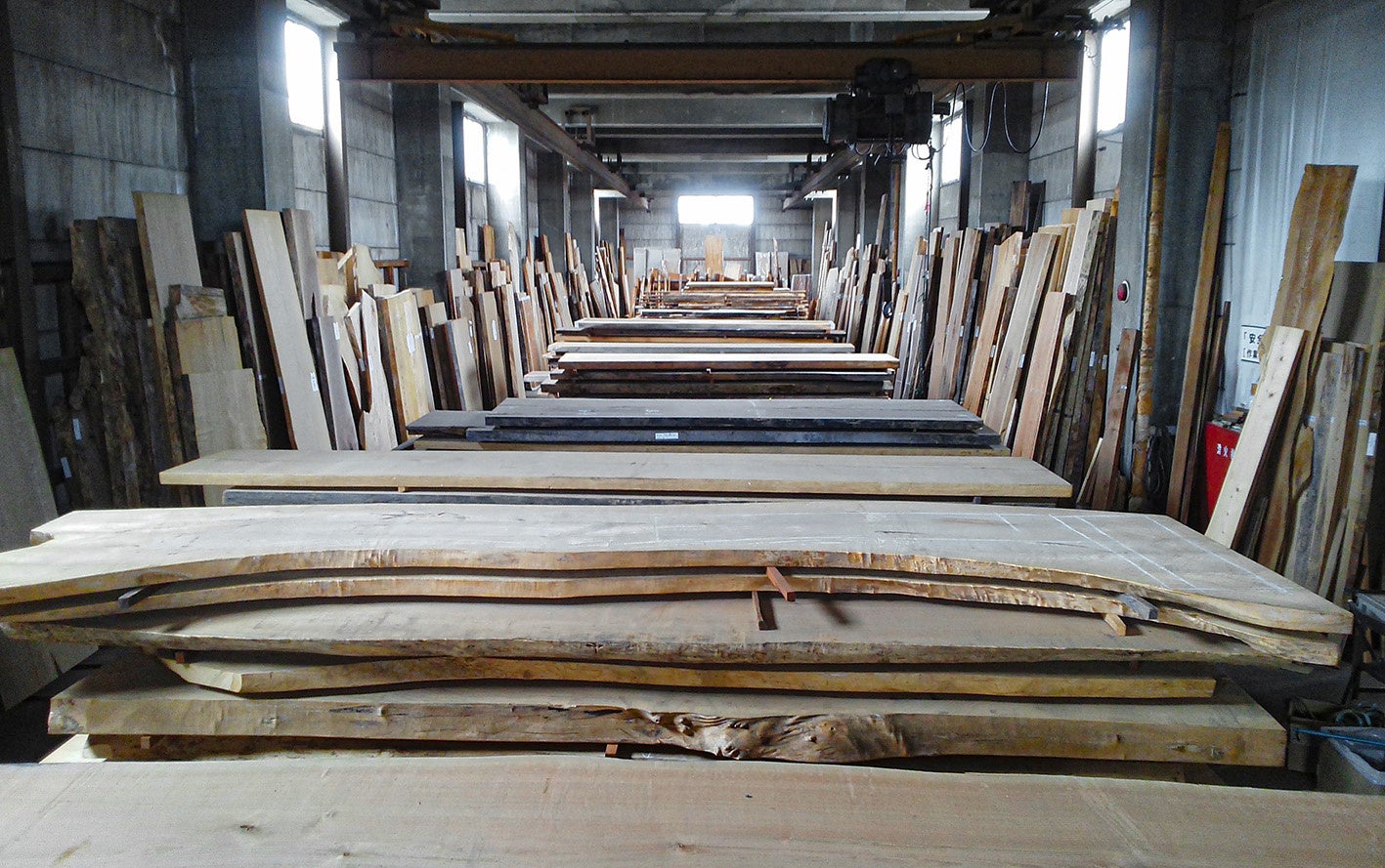 同社が保有する銘木・木材は5万点を超え、日本一の保有量を誇ります。原木の仕入れ、製材、製品加工、販売まで全て一貫して自社で行い徹底した品質管理を行なっております。脈々と受け継がれる目利き力や職人技術で「無いものが、そこにある。」と評されるほど、業界でも一目置かれる存在です。