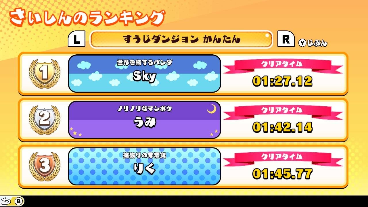 ランキングボードは各ミニゲームごとと、5種のミニゲームをミックスした形の6種類があり、それぞれ「かんたん」「ふつう」「むずかしい」の3つのレベルに分かれています。