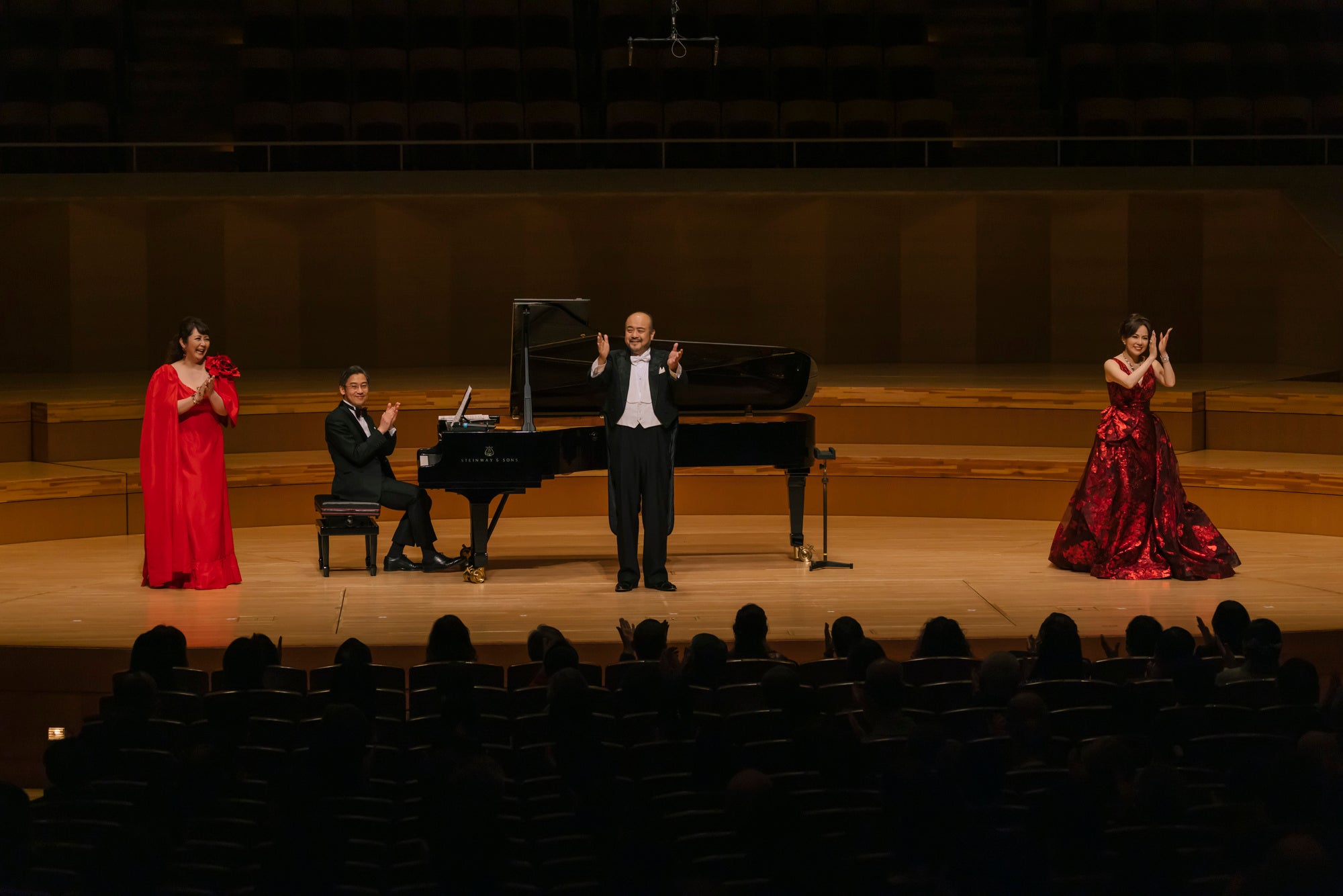 ▲写真左から:林美智子さん(メゾソプラノ)、山岸茂人さん(ピアノ)、佐野成宏さん(テノール)、森麻季さん(ソプラノ)