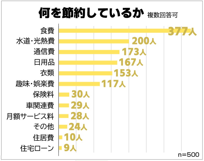 何を節約していますか?という質問で、日々節約しているものを回答していただいた結果はこちら。