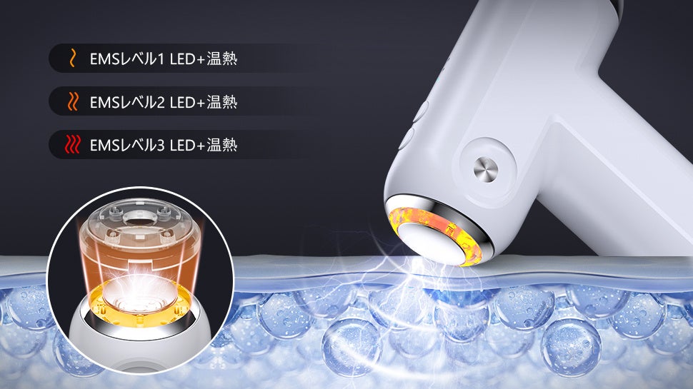 ②「EMS・温熱ケアモード」: 温感ヘッドの熱(標準42℃)で、スイッチを入れると素早く加熱を開始、まるでお湯のようなここちよさ、お肌のケアをサポートします。