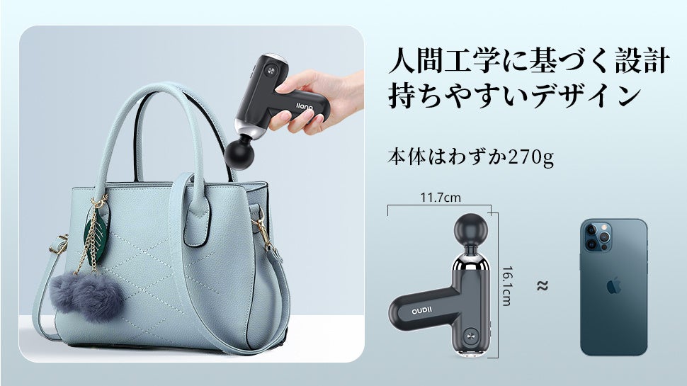 わずか270gの軽さで、片手で簡単に持つことができるコンパクトなサイズです。スマートフォンと同じくらいの大きさなので、ポケットやバッグに入れて外出することができます。いつでも手軽に持ち運んで、快適なケアをお楽しみください。