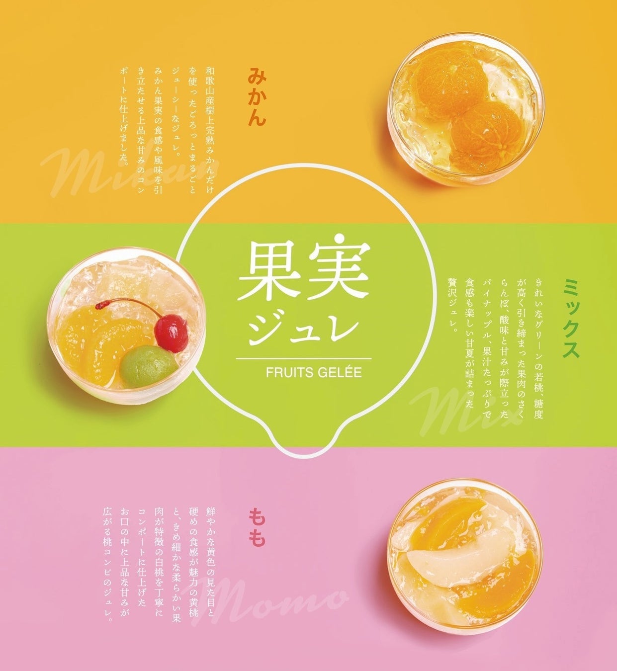 「若桃」「みかん」を始め、人気のフルーツを詰め込んだ贅沢ジュレ